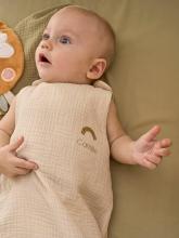 Une gigoteuse toute douce et légère pour les nuits d'été. En gaze de coton Bio sans doublure, elle est respirante et agréable à porter. Elle est personnalisable avec le prénom de votre enfant, pour un cadeau unique