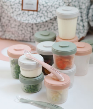 Pack premiers repas 12 portions + 2 cuillères eucalyptus/rose/gris | Béaba