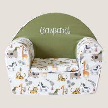 Aventure garantie avec ce modèle de fauteuil club pour enfant motif savane ! Personnalisation "Owen"