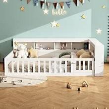 OOIILLEE Lit Enfant 140x200 avec barrières, Lit Double 140x200 avec Prise et USB, Lit Montessori en Panneau de Particules Blanc(sans Matelas) : Amazon.fr: Cuisine et Maison