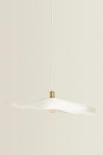 Lampe suspension avec double feuille de couleur écrue et détail doré.