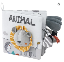 Vicloon Livre en tissu doux pour la 1ère année de bébé avec queues d’animaux en 3D, bruits de froissement, livre de bain tactile pour le développement précoce des sens (version anglaise)