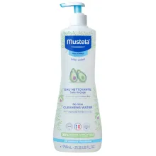 Mustela Eau Nettoyante Sans Rinçage nettoie efficacement et en douceur toutes les impuretés du visage et du siège des bébés et des enfants, dès la naissance.