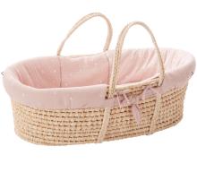 Couffin en osier avec habillage en tetra brodé rose