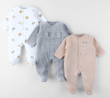 Barboteuse en douce mousseline de coton. Modèle avec encolure ronde et boutonnage devant. Manches courtes terminées par revers cousu. Boutons-pression dissimulés à l'entrejambe pour faciliter le change. Petit élastique en bas de jambe.