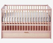 Lit Bébé évolutif 70x140cm avec tiroir de rangement en cannage LIGNE POESIE - rose nude, Chambre et rangement