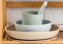 Nattou Set Repas Enfant 4 Pièces Silicone - couleur vert et beige