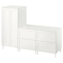 SMÅSTAD / PLATSA armoire-penderie, blanc avec cadre/avec 2 commodes, 180x57x133 cm Où ranger de petites choses quand on a peu d'espace ? Dans une commode basse et peu profonde, bien sûr ! Votre enfant a accès au contenu pour trouver ses affaires, et peut-être les rangera-t-il aussi plus facilement.