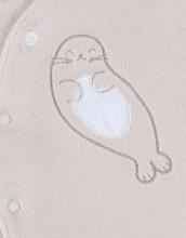 Pyjama bébé en velours écru avec broderie phoque | Noukie's