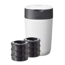 La poubelle à couches Sangenic Twist & Click de Tommee Tippee emballe et enveloppe hermétiquement chaque couche sale individuelle dans un film antibactérien multicouches.
