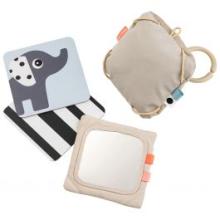 Le porte-cartes contrastées avec miroir et cartes de Done By Deer offre une stimulation visuelle dès le premier jour.