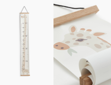 Décoration murale en papier avec toise imprimée en centimètres et en pieds.
