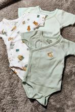 Lot de petits bodys dans les tons vert, sur la thématique des petits animaux