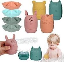 Badspeelgoed, 8 stuks, siliconen babybadspeelgoed met opening, sproeibaar, dieren, drijvend speelgoed, BPA-vrij, neutrale kleur, badspeelgoed voor bad, zwembad, strand, Kerstmis, verjaardagscadeaus : Amazon.com.be: Speelgoed