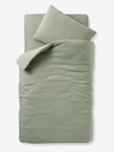 Parure bébé housse de couette + taie d'oreiller unie en gaze de coton Bio* - vert sauge, Linge de maison et décoration