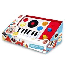 Aidez vos enfants à jouer leurs premiers morceaux grâce à cette table de DJ portable ! Jouez du clavier en solo avec les quatre sons d’instruments et les 18 effets sonores ludiques. Lancez une des cinq mélodies de fond, utilisez le curseur de tempo pour changer la vitesse, ajoutez des effets sonores de DJ ou scratchez avec le disque noir ! La table de mixage entre automatiquement en mode veille si elle n'est pas utilisée une minute après l'arrêt de la musique. Appuyez sur n'importe quelle touche pour la réactiver.
