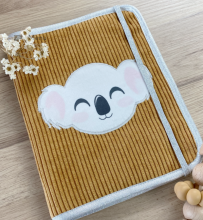 Pour protéger son carnet ONE. S'il est fait maison, c'est très bien aussi! Du jaune, du rose, du liberty, un koala. Vous aurez compris quel est le thème de cet enfant!