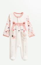 Une jolie renarde a choisi de se reposer dans un nid de velours. Cette grenouillère offrira des nuits de douceur à votre bébé. Craquez pour les tons bois de rose et les motifs de feuillages romantiques.