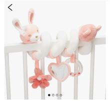 Une spirale d'activités qui participe à l'éveil de bébé. Sa forme lui permet de s'enrouler facilement autour d'un lit, d'un parc, d'une poussette ou encore d'un couffin. Spirale d'activités avec ours, lapin, fleurs, coeur, et anneau à billes