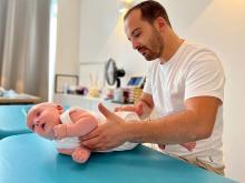 Ayant été coincé à la naissance, quelques petites séances d'ostéo lui font le plus grand bien