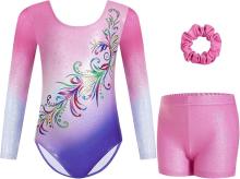 Gogokids Justaucorps de gymnastique trois pièces à manches longues pour filles – Tenue de gymnastique pour enfants avec motif à paillettes dégradées comprenant justaucorps, short et élastique à : Amazon.com.be: Mode
