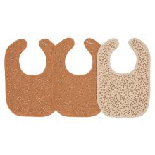 Détails produit • Lot de 3 bavoirs, imprimé léopard • Fermeture pressionnée • Recto en gaze de coton • Verso en éponge • Taille unique • Largeur : 24 cm • Hauteur : 34 cmComposition et Entretien • Matière principale : 100% coton • Secondaire : 80% coton, 20% polyester • Température de lavage 40° • Température de repassage moyenne / blanchiment interdit • Séchage en tambour faible • Pas