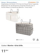 Bedside Organizer, 2 x Bedside Bags, Hanging Basket Storage Bag, Waterproof Hanging Storage Bag with 3 Pockets, Curtain for Mezzanine Bed (White + Grey Grid) : Amazon.com.be: Home & Kitchen