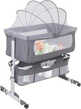 WODFARR Lit Cododo Bébé 2 en 1, Berceau Cododo avec Matelas et Moustiquaire, Berceau Bébé, Capacité de Charge 50KG, Réglage de la Hauteur (92 * 58 * 70-87cm,Gris) : Amazon.fr: Bébé et Puériculture