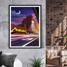 Affiche illustration originale "One Night in Charleroi" 50x70cm. Créée et imprimée en Belgique, papier 300gr.