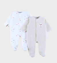 Lot de 2 pyjamas bébé en velours brodé mouton | Noukie's