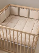 Un tour de lit pare-chocs qui protège bébé des barreaux du lit et lui offre un cocon douillet. En gaze 100% coton, il est tout doux et confortable. Il s'adapte à tous les lits à barreaux grâce à son système de bande