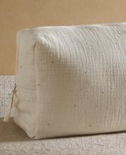 Trousse de toilette pour enfant en gaze de coton, dotée d’une fermeture Éclair et ornée d’un imprimé lunes.