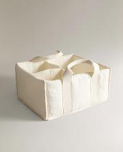 Organiseur de table pour enfants en coton, doté de deux poignées sur les côtés et de trois séparateurs. Motif en forme de lunes.