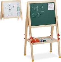 Relaxdays Tableau sur pied pour enfant - Réglable en hauteur et magnétique - En bois - Tableau blanc et tableau à craie - 81-104 x 45 x 42 cm - Naturel : Amazon.com.be: Jouets