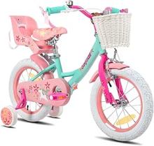 JOYSTAR Vélo licorne 14" pour fille de 4, 5, 6 ans, vélo enfant avec siège de vélo de poupée et roues stabilisatrices, vert : Amazon.com.be: Jouets