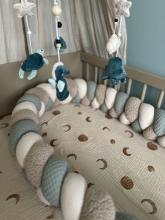Protégez le lit de votre enfant avec notre de tour de lit tressé 3 épis modèle vert sauge ! Adaptez-le à tous types d'univers et de décoration !