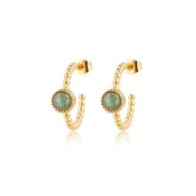 Gouden Bolletjes Oorring met Groene Fluoriet – Stainless Steel | My Bendel
