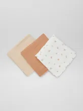 Un joli lot de 3 langes en coton pour bébé. - Lot de 3 langes- 100% coton - 1 lange avec motifs 'Safari' all over - 2 langes unis - Dimensions : 60 x 60 cm