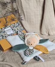 Doudou pétale lion jaune et verte à offrir dès la naissance