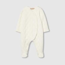 Cette couverture est un modèle chaud, qui joue sur les contrastes. Confectionnée dans un mélange de laine et de cachemire, elle allie un tricotage point mousse et une bande ivoire en tricotage point jersey ornée d'une signature DIOR en jacquard beige chiné. Cette couverture élégante constituera le cadeau de naissance idéal.