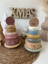 Une tour à empiler en bois personnalisée avec les infos de naissance de bébé Détails : Disponible en 3 styles Personnalisation : gravure laser