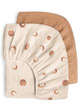 Bearmoss Lot de 2 draps-housses en mousseline 100% coton pour enfant - 60 x 120 cm/140 x 70 cm - Pour lit de voyage, lit d'appoint, lit d'appoint - Lune marron (Lune brune)