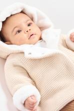 Veste chaude en maille doublée soft boa à capuche beige naissance