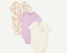 Lot de 3 bodies manches courtes en coton bio uni écru et imprimé à fleurs - whisper white | Tape à l'oeil