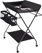 SABUIDDS Table à langer pliable et portable pour bébé sur roulettes - Commode à langer réglable en hauteur sur 3 niveaux - Avec matelas à langer, ceinture de sécurité et compartiments de rangement