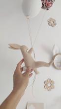 ♥ Cette jolie décoration est entièrement faite main en coton, et représente un petit lapin accroché à 3 ballons s'envolant dans les airs! Cet objet sera parfait pour décorer une chambre d'enfant ou bébé, permettant d'apporter de la douceur et de la poésie dans leur joli monde.Il est accompagné d'un crochet plafond adhé