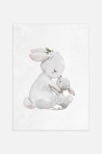 Une jolie affiche d'une lapine câlinant son bébé. Un super motif si vous voulez ajouter un touche d’amour à la chambre des enfants, et aussi un grand poster pour nous rappeler l’importance des câlins.
