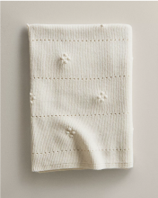 Couverture pour bébé en maille de coton, avec ajours décoratifs et pois en relief.