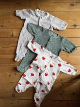 Lot de 3 pyjamas taille 3 mois, de marque Nathalys, Jacadi et Petit Bateau (achetés d’occasion à des amis).