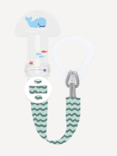Une boucle flexible permet, en un tour de main, d’attacher une sucette à anneau, un anneau de dentition,..